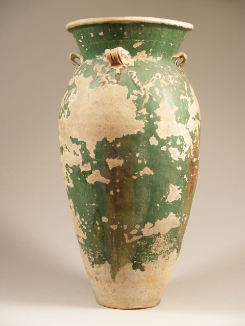 | Nederlands | Vaas, tempelvaas, met 4 oren en decor in reliëf van 2 draken op schouder, groen geglazuurd |