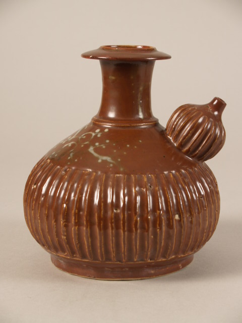 | Nederlands | Kendi met decor van vertikale randen in reliëf op het lichaam en de tuit |