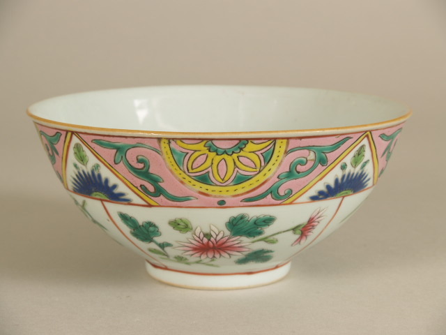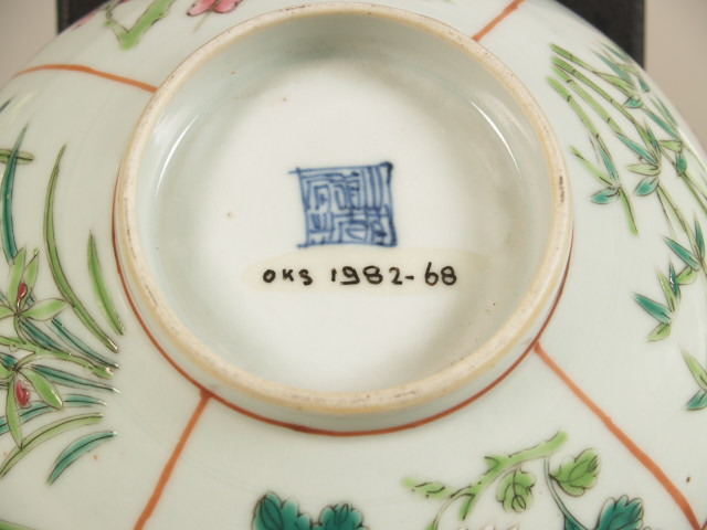 Kom met decor van bamboetakken, prunustakken en chrysanten, famille rose (Nederlands)