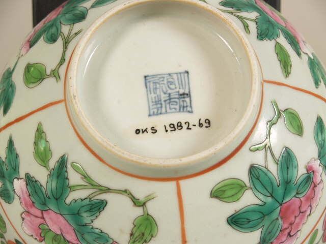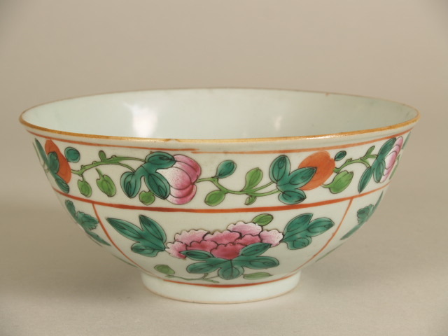 | Nederlands | Kom met decor van pioenrozen en meloentakken, famille rose |