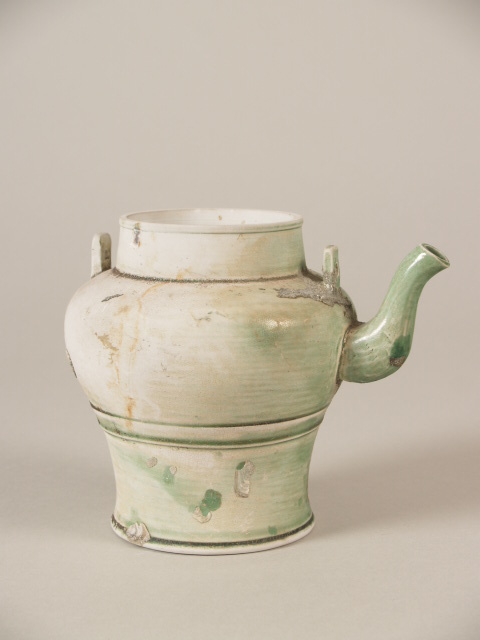 Wijnpot zonder deksel, bedekt met verweerd groen glazuur (Q22017)