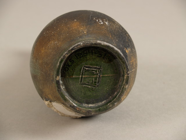 Vaas met verweerd en verkleurd groen glazuur (Nederlands)