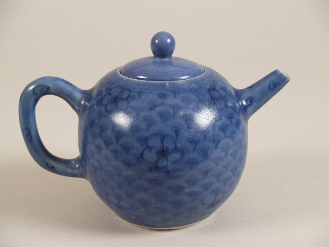 Theepot, blauw, met decor van golven en bloemen (Nederlands)