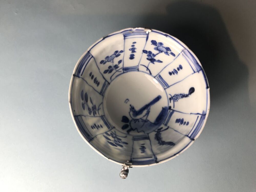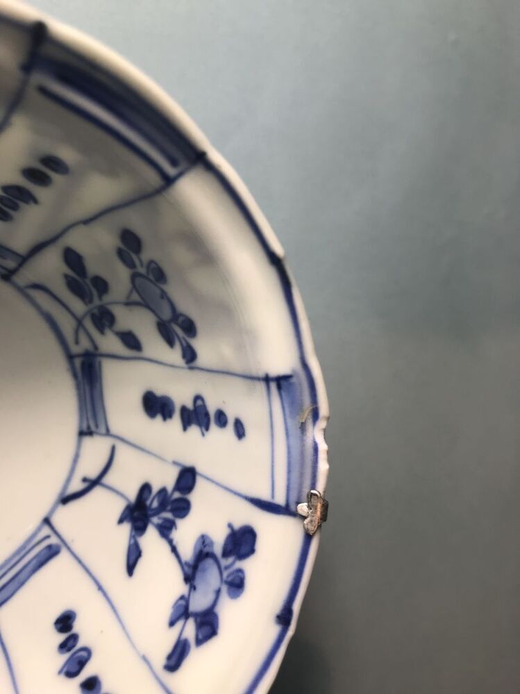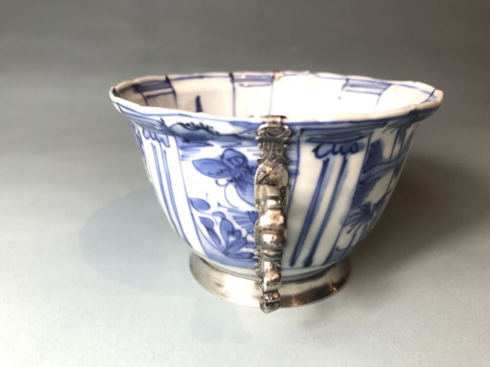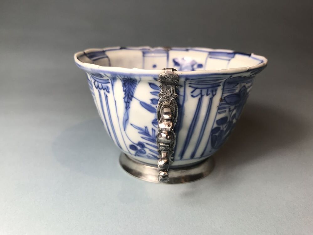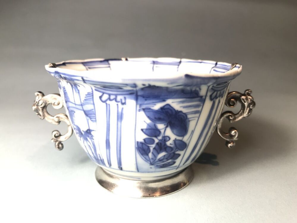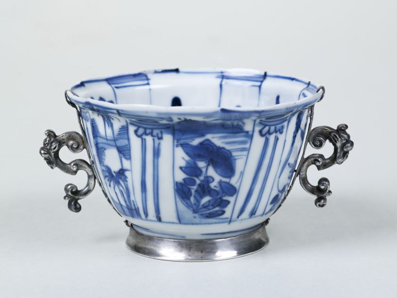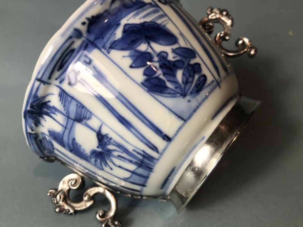 Kraaikop, met zilver gemonteerd, met decor van vakken met planten, kraakporselein (Q22056)