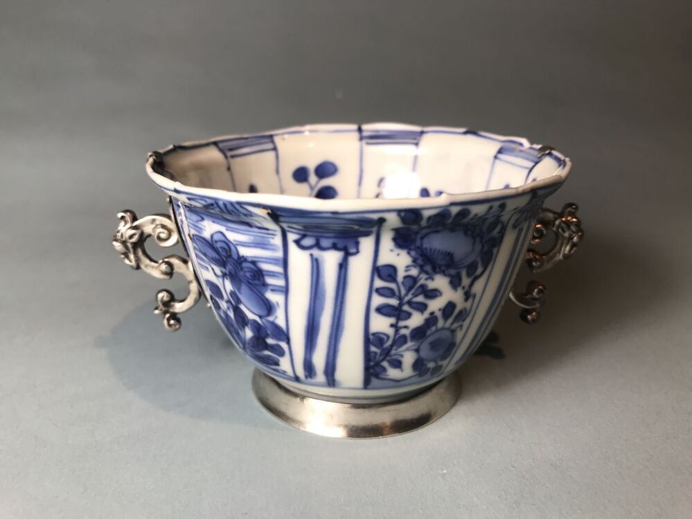 | Nederlands | Kraaikop, met zilver gemonteerd, met decor van vakken met planten, kraakporselein |