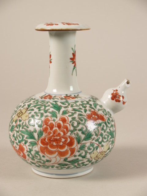 | Nederlands | Kendi met decor van krullende bloemranken, famille verte |