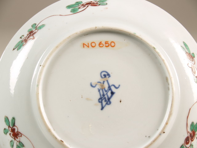 Op de bodem in kobaltblauw een ruitvormig symbool met linten. (Nederlands)