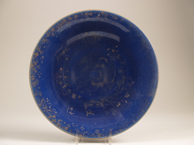 Schaal met donkerblauw glazuur en verguld decor van bloemen (Nederlands)