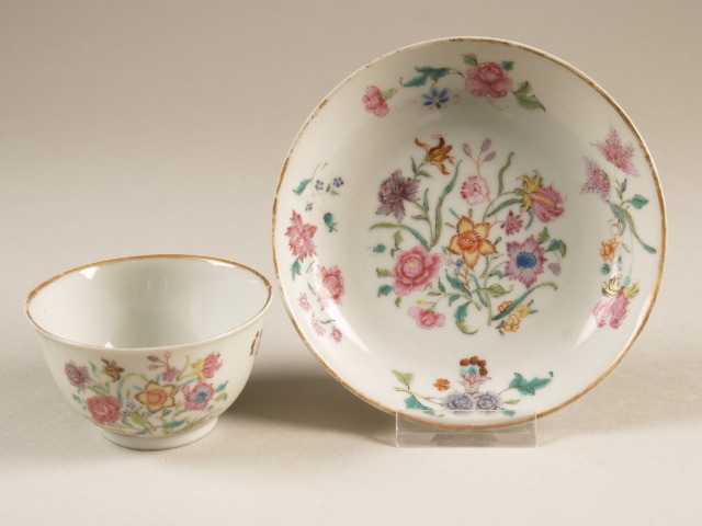 | Nederlands | Kop en schotel met decor van Europese bloemen, famille rose |
