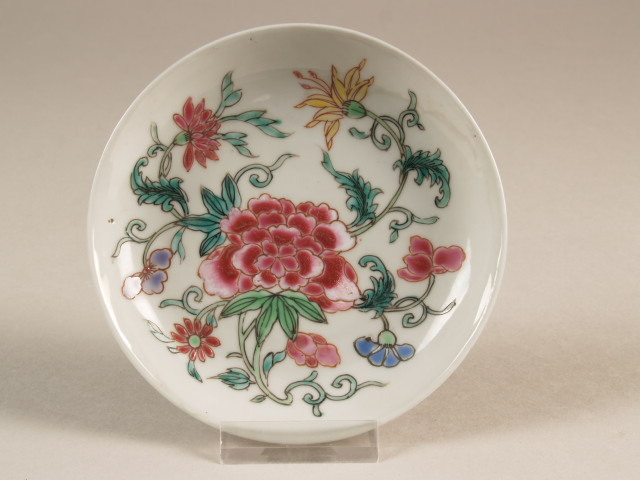 Schotel, onderdeel van kop en schotel met decor van bloemtakken, famille rose (Nederlands)