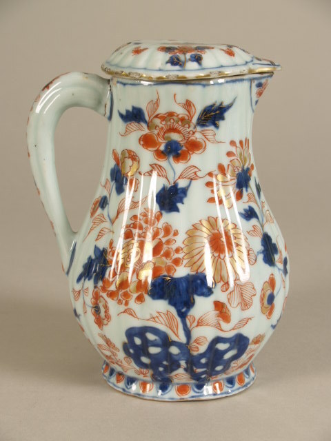| Nederlands | Kan met deksel met geribde buitenkant en decor van bloemranken en rotspartij |