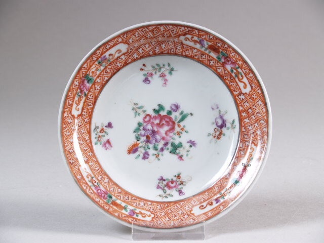 Schoteltje met polychroom decor van Europese bloemen met veel ijzerrood, Lowestoft (Q22150)