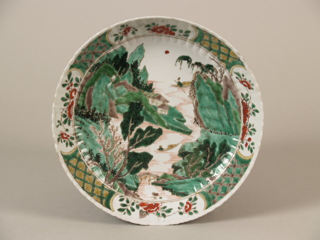 Schaal met decor van meerlandschap in de bergen met figuren, famille verte (Q22162)