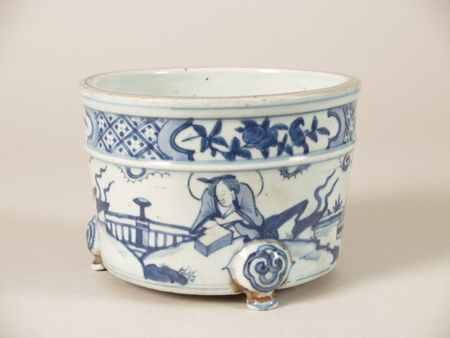 Wierookbrander met decor van geleerde in tuinlandschap (Nederlands)