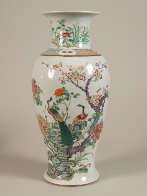 | Nederlands | Vaas met decor van rotspartij, 2 pauwen en bloeiende planten |