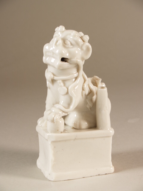 Wierrookbrander in de vorm van een/Plastiek in vorm van boeddhistische leeuw, blanc de chine (Q22373)