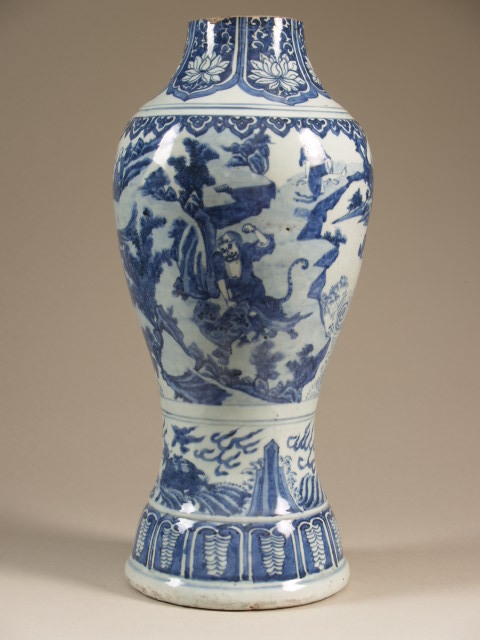 Vaas met afgesneden hals met decor van rivierlandschap met tijger en vele figuren, Lohan (Nederlands)