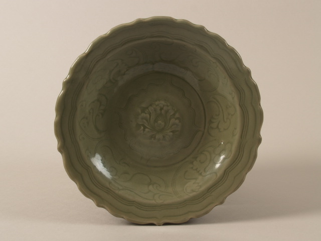 Bord met accoladevormige rand en met ingesneden en gestempeld decor van lotusbloem en bladranken (Q22413)
