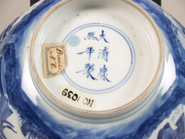 onderkant: Kangxi- zesmerk in dubbele ring onderglazuur blauw (Nederlands)