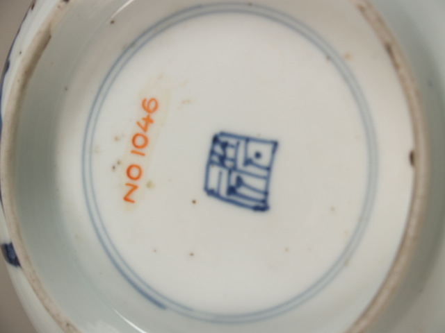 in kobaltblauw een vierkant zegelmerkje in dubbele ring op de bodem (Nederlands)