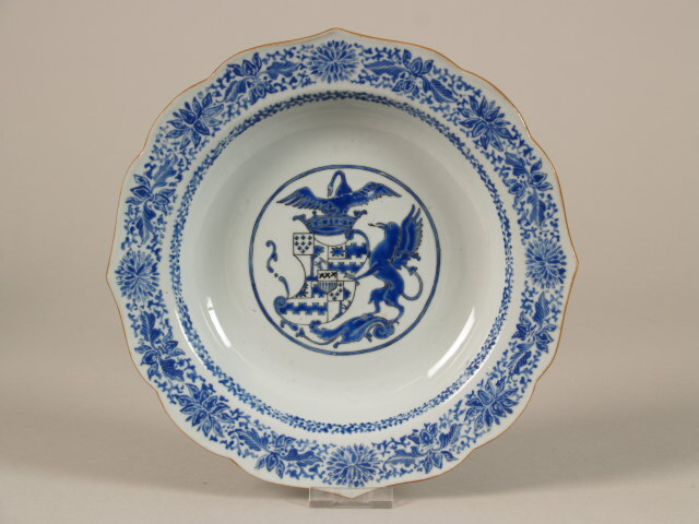 Bord gedecoreerd met het wapen van de familie Van der Linden van Slingelandt, chine de commande (Nederlands)