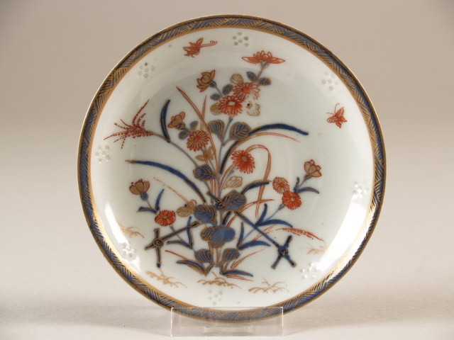 | Nederlands | Schotel met polychroom floraal decor in imaripalet en rijstkorreltechniek |