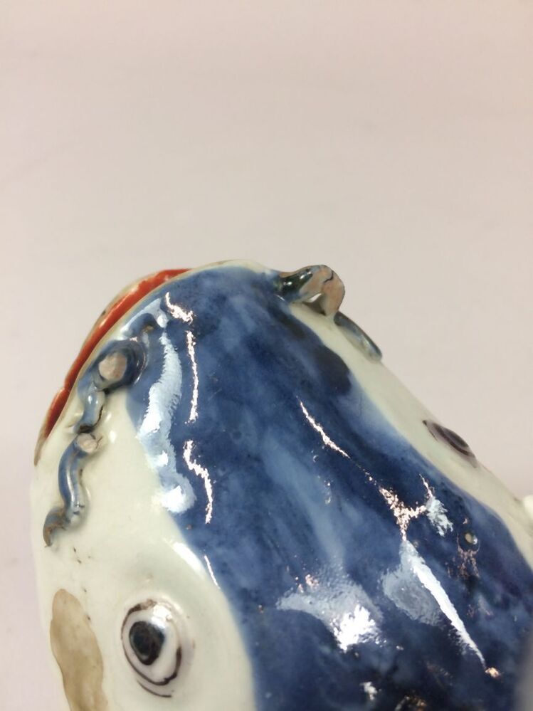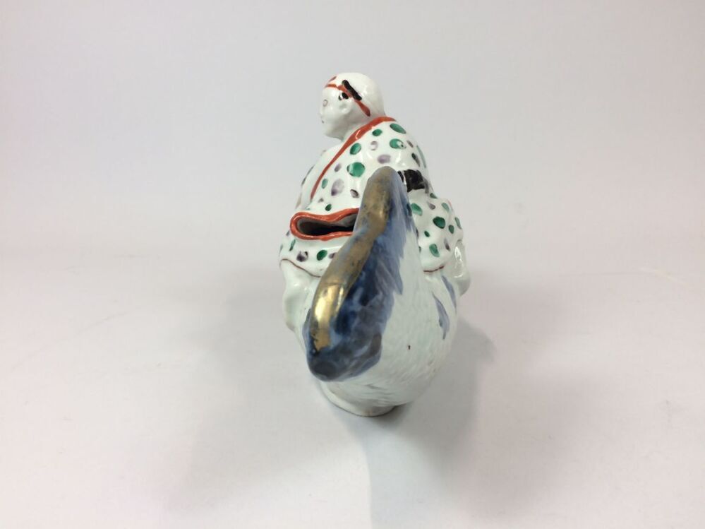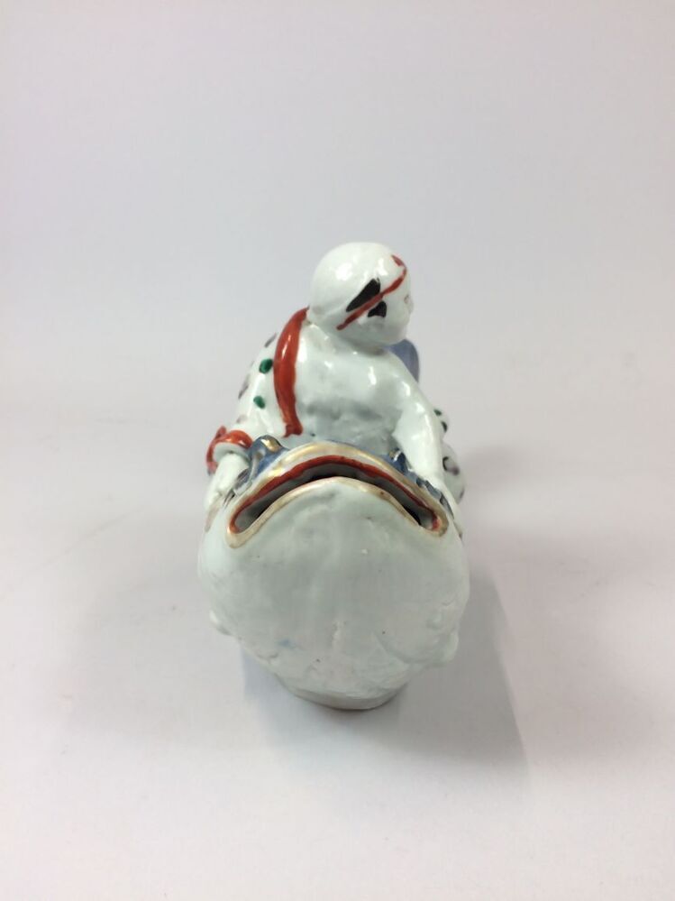 Het figuur op de rug verwijst naar Benkei, een legendarische krijger uit de 12e eeuw. Hij wordt de volger van Minamoto Y...m zijn kaalgeschoren hoofd en kimono te laten zien.||Japan||Arita||onbekend||onbekend||Keramiekmuseum Princessehof NO 01097 |