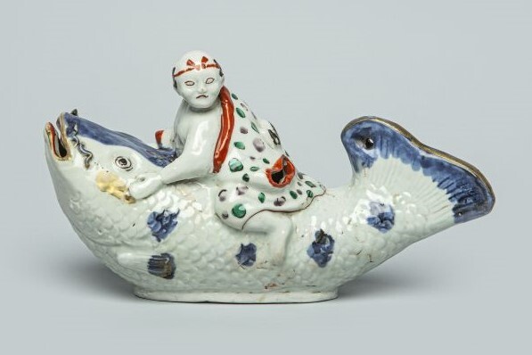 Vaas in de vorm van een karper met een man op de rug, arita. (Q22487)