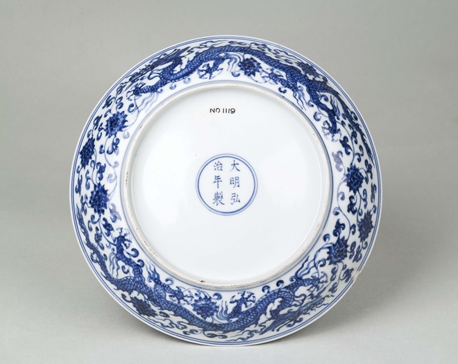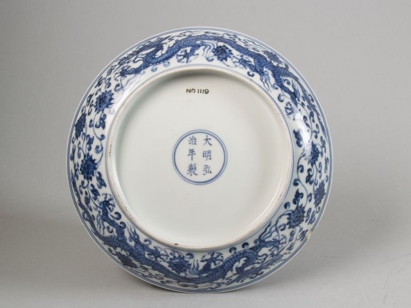 op de bodem in kobaltblauw zes-karakter merk Hongzhi in dubbele ring (Nederlands)
