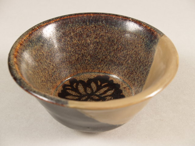 Kom met decor van bloem, temmoku (Nederlands)