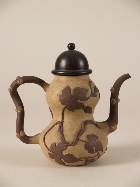 Theepot in de vorm van een kalebas en een decor van wijnranken (Q22559)