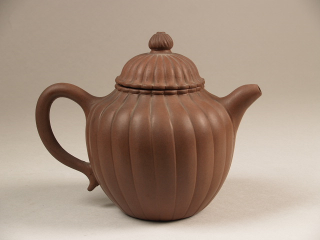 Theepot met verticaal geribd lichaam en deksel (Nederlands)