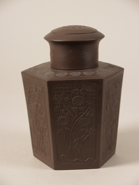 Theebus, zeshoekig, met decor van florale motieven op de zijkanten (Q22590)