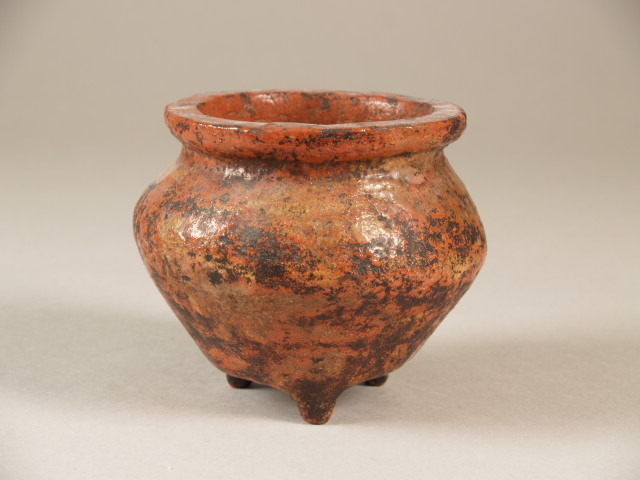 Wierookvat op 3 poten met oranjekleurige raku (Nederlands)