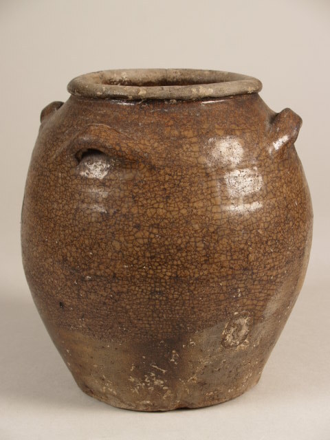| Nederlands | Pot, martavaan, met 4 oren met gecraqueleerd bruin glazuur |