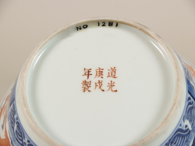 op de bodem in ijzerrood horizontaal zesmerk: Daoguang keng hsu nien chih (Nederlands)