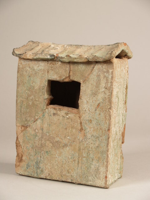 | Nederlands | Grafplastiek van huis met dak en raam |