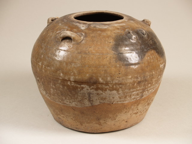 Kruik, deels bedekt met gecraqueleerd olijfgroen glazuur (Nederlands)