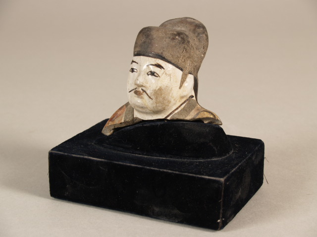 Fragment van beeld, bestaande uit hoofd van een man, hals en schouder (Nederlands)