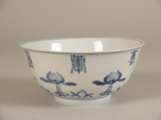 Kom met decor van Chinese karakters en florale motieven (Nederlands)