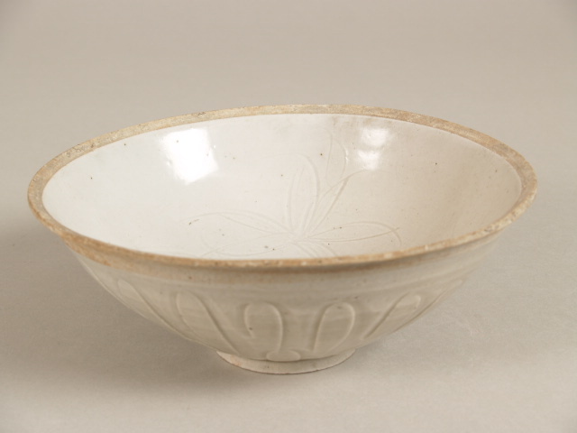 Kom met ingekrast decor van bladeren op de buitenwand (Nederlands)