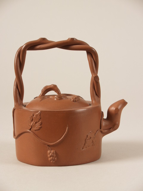 Theepot met gedraaid hengsel en decor van bladranken (Nederlands)
