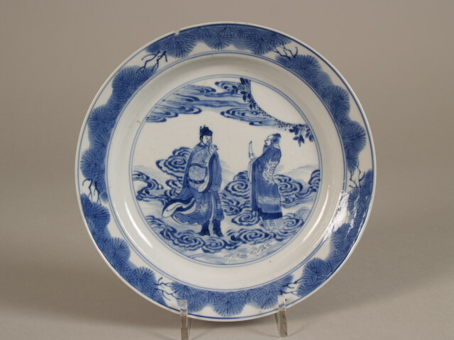 Bord met voorstelling van 2 mannen in landschap (Q22940)