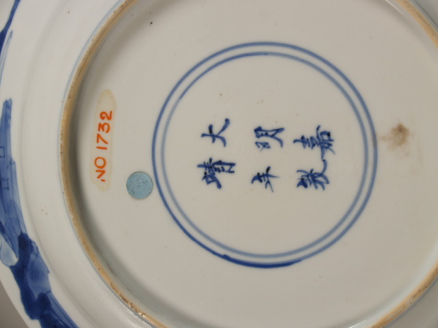 in kobaltblauw op de bodem vertikaal zesmerk Chia Ching (Nederlands)