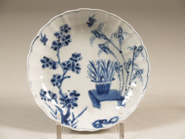 Schoteltje zonder kopje met decor van bloempot, bamboe en prunus (Q22964)