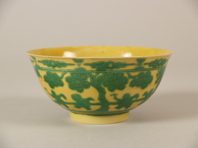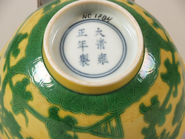 onder op de bodem in kobaltblauw vertikaal zesmerk Yung Chêng in dubbele ring (Nederlands)