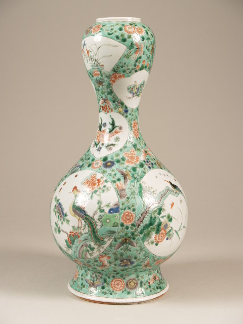 Knobbelvaas met decor van bloemen en vogels, famille verte (Nederlands)