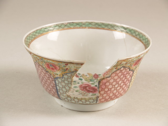 | Nederlands | Kom, fragment, met decor van ruitpatronen in vakken, famille rose |