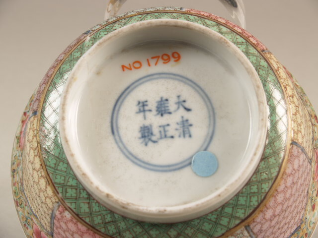 Kom, fragment, met decor van ruitpatronen in vakken, famille rose (Q22998)