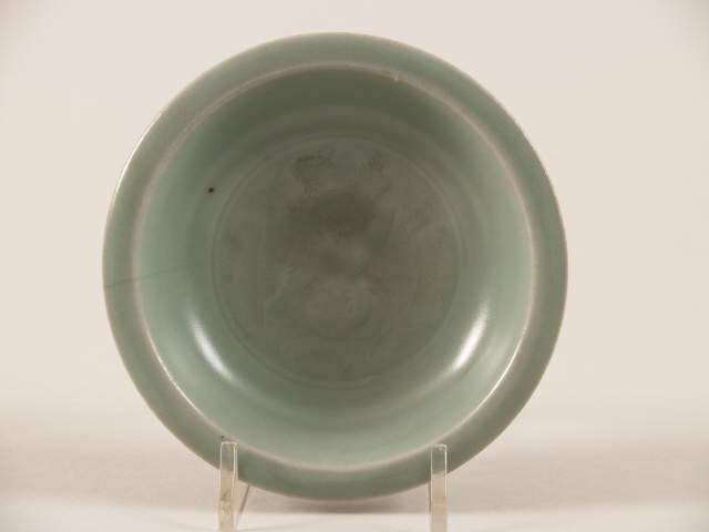 Kom met ingesneden decor van 2 vissen en ingekamde golven, celadon (Q23010)